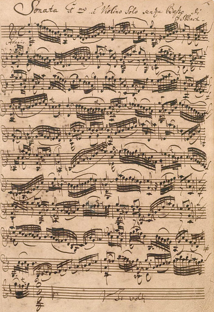 Die erste Seite der Violinsonate Nr. 1 in g-Moll BWV 1001, in Bachs Handschrift