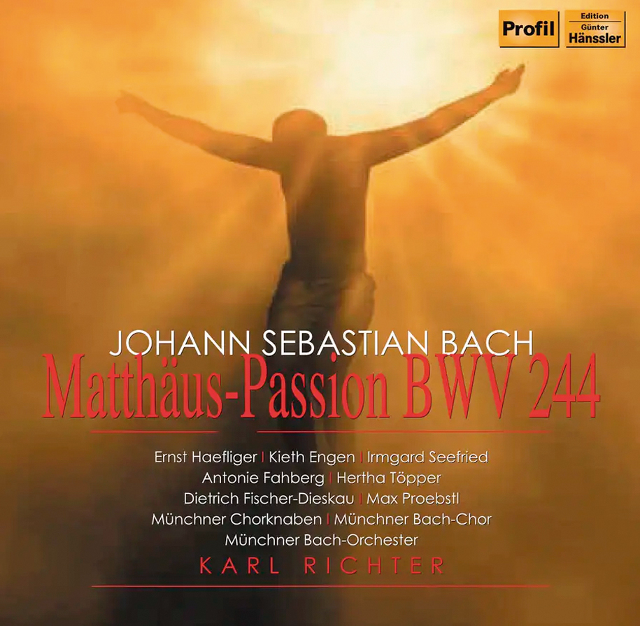 Ernst Haefliger (Evangelist / Tenorarien), Kieth Engen (Jesus), Irmgard Seefried (Sopranarien),  Antonie Fahberg (Sopranarien / Erste Magd, Pilatus Weib), Hertha Töpper (Altarien / Zweite Magd), Dietrich Fischer-Dieskau (Bassarien), Max Proebstl (Bassarien / Petrus, Pilatus, Hohepriester), Münchner Chorknaben, Münchner Bach-Chor, Münchner Bach-Orchester/Karl Richter