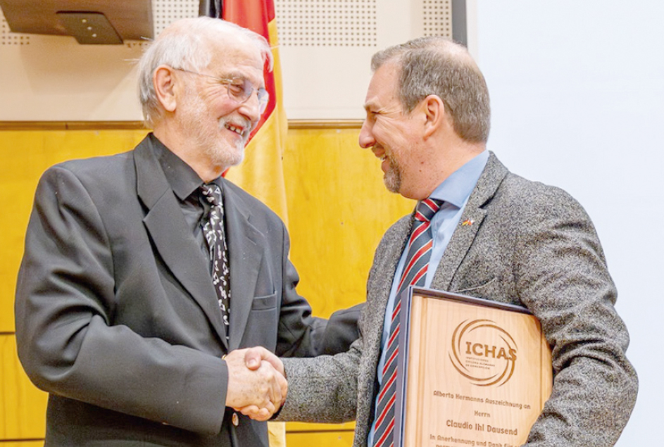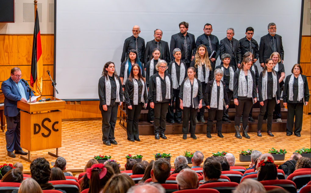Mit einer feierlichen Zeremonie begingen Vertreter des Konsularischen Korps sowie Mitglieder und Freunde der deutsch-chilenischen Institutionen von Concepción den 35. Tag der Deutschen Einheit am 3. Oktober. Eröffnet wurde die Feier von Verena Hempel, Vorsitzende der Institutiones Chileno-Alemanas de Concepción in der Deutschen Schule Concepción. Sie gedachte Reiner Rothermel, des kürzlich verstorbenen Initiatoren der Feier der deutsch-chilenischen Institution, die damit den Kulturellen Austausch mit dem DCBR in Concepción verstärkt. Ein besonderer Programmpunkt war eine Darbietung des Lutherischen Kirche, die Einblicke in die Geschichte der diakonischen Arbeit vermittelte. Für musikalische Untermalung sorgte der Martin-Luther-Chor unter Leitung von Werner Hof, mit einem deutschen Repertoire. Zum Abschluss überreichte Konsul Pablo Millian die Alberto-Hermanns-Auszeichnung an Claudio Rufián für sein langjähriges Engagement in den Institutionen. Der Abend endete in geselliger Atmosphäre mit kulinarischen Beiträgen der Deutschen Institutionen und deren Abende.