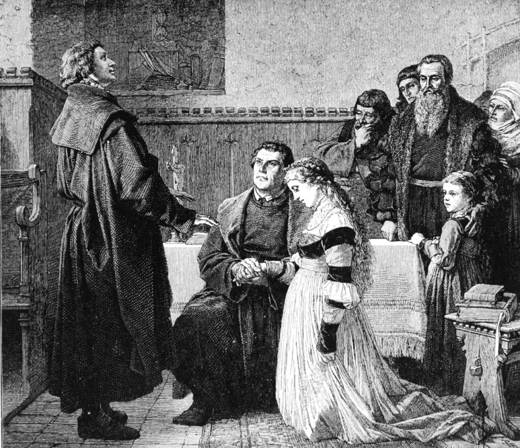 Für Luther war die Ehe kein Sakrament. Sie sei «ein weltlich Ding» – wenn auch göttlich gestiftet – und in der natürlichen Ordnung der Schöpfung sind Sexualität und Fortpflanzung nichts Sündiges, sondern Ausdruck göttlichen Willens.
