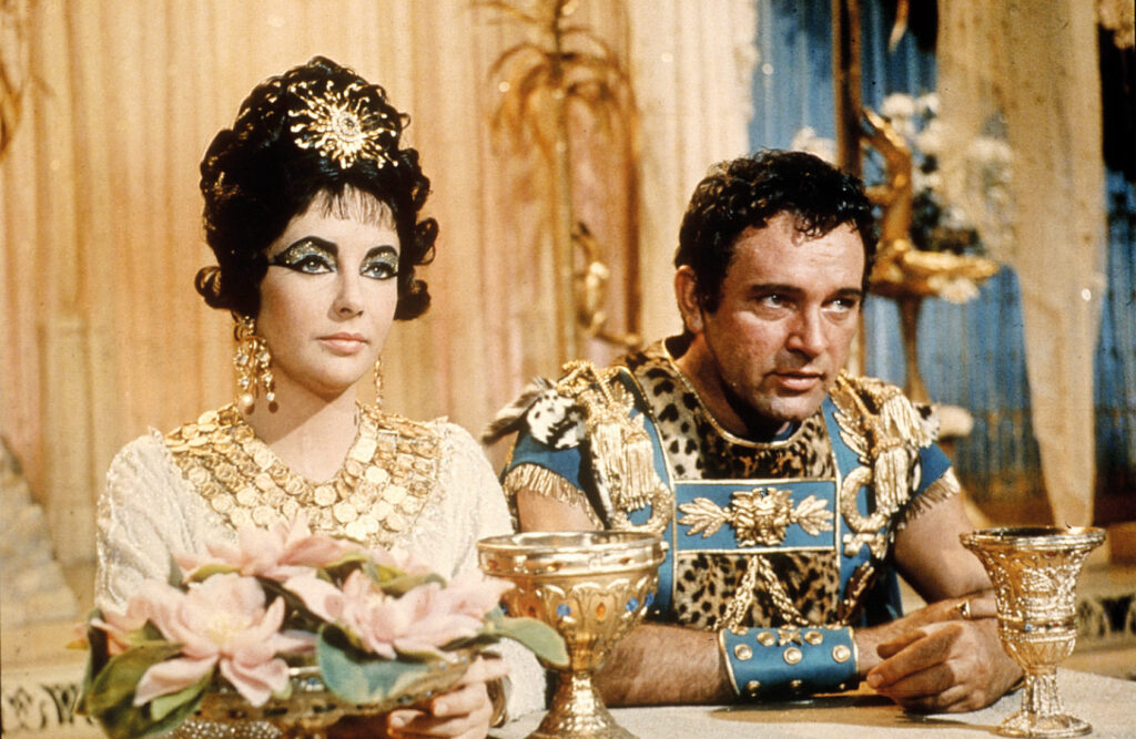 Viel Reklamerummel gab es um «Cleopatra» (1963), in dem er den römischen Feldherrn Marcus Antonius spielte. Während der Dreharbeiten in Rom kam er seiner Kollegin und Hauptdarstellerin Elizabeth Taylor zu nahe, was zunächst dem Personal am Filmset auffiel. Natürlich erfuhr die Presse auf der Stelle von dem Verhältnis und sandte ihre Paparazzi ins Studio, um kompromittierendes Fotomaterial einzufangen. Taylor war noch mit Eddie Fisher verheiratet, Burton mit Sybil Williams. Die Boulevardblätter und Illustrierten berichteten ausführlich von der Affäre. Die Zeitung des Vatikan «L’Osservatore Romano» verurteilte Taylor ob ihrem «erotischen Vagabundieren» – der Skandal war perfekt. Im Nachhinein sollte das Techtelmechtel dem Film noch zusätzlich kostenlose Werbung spendieren.