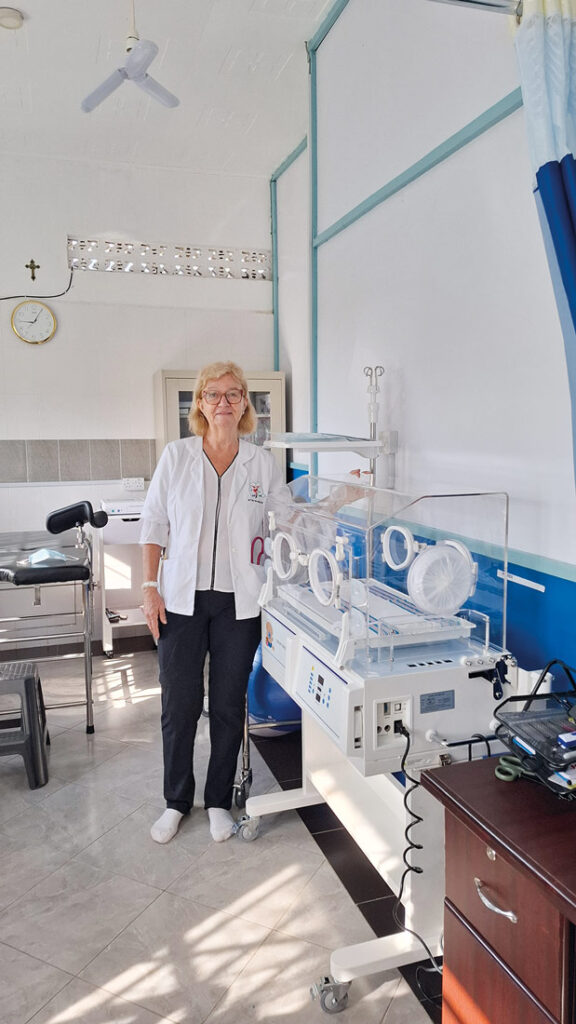 «Viel medizinisches Material und nur wenig Kleidung, auβer weiβen Kitteln, war in unseren Koffern. Ich arbeitete mit der chilenischen Krankenschwester Marcela (die über das Projekt ‚Entretribus‘, gegründet von ehemaligen Studenten der Universidad del Desarrollo, ausgewählt wurde), mit den afrikanischen Ärzten, Hebammen und Krankenschwestern zusammen. Es war ein Riesenzufall, dass Marcela ebenfalls Erfahrung in der Intensivmedizin hat. Wir führten Arbeitsprozesse ein, begleiteten das lokale Team bei der täglichen Arbeit, korrigierten, wenn nötig, gestalteten und überarbeiteten viele potenzielle Fälle und revidierten praktische Arbeit bei Notaufnahmen. Einen Inkubator für Neugeborene konnte ich dank der Mithilfe einer Freundin kaufen – der erste im ganzen Bezirk, gedacht für die Warmhaltung und einen eventuellen sicheren Transport in das nur 15 Kilometer entfernte Krankenhaus, zu dem man über unbeschreiblich schlechte Straßen gelangt.»